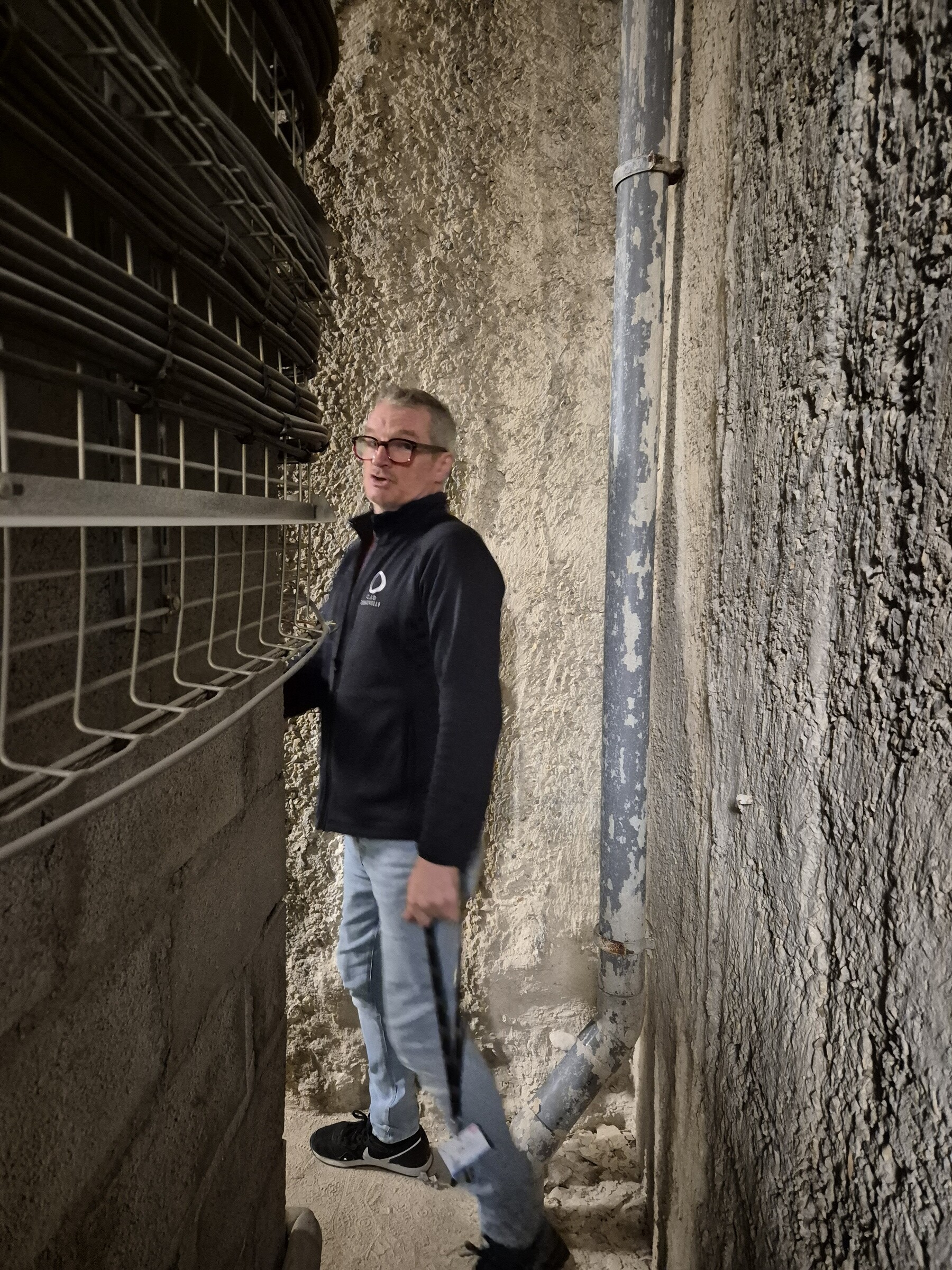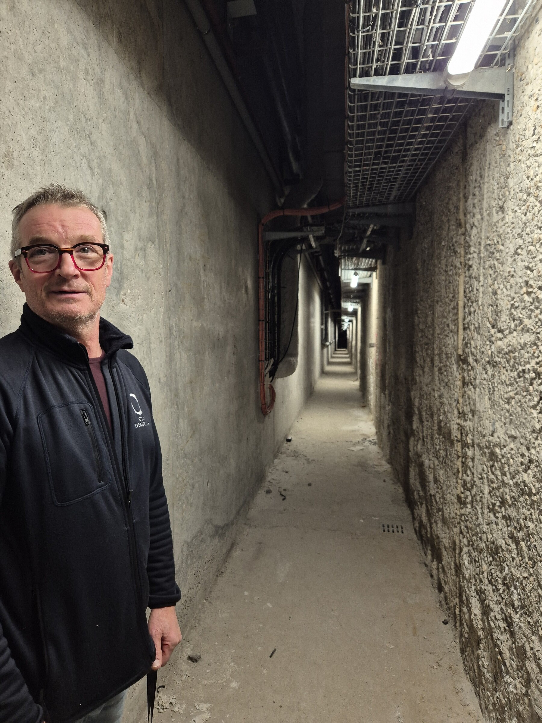 C’est Joël Daubichon, coordinateur technique du site, qui guide cette descente. Voilà plus de trente ans qu’il veille sur le bâtiment, qu’il a vu sortir de terre — ou plutôt s’y enfoncer.